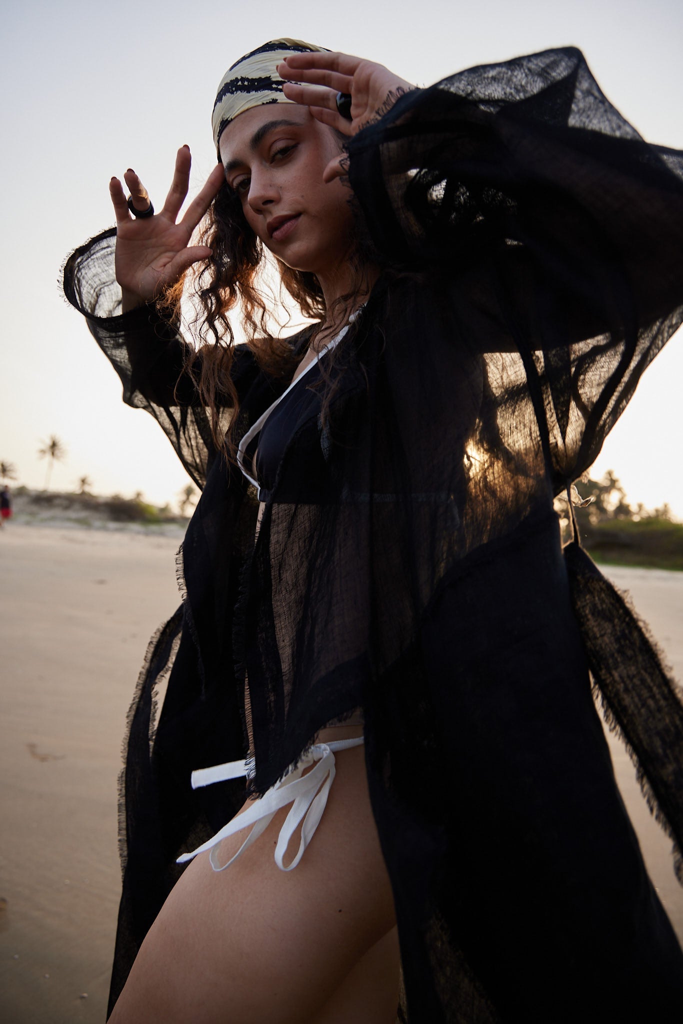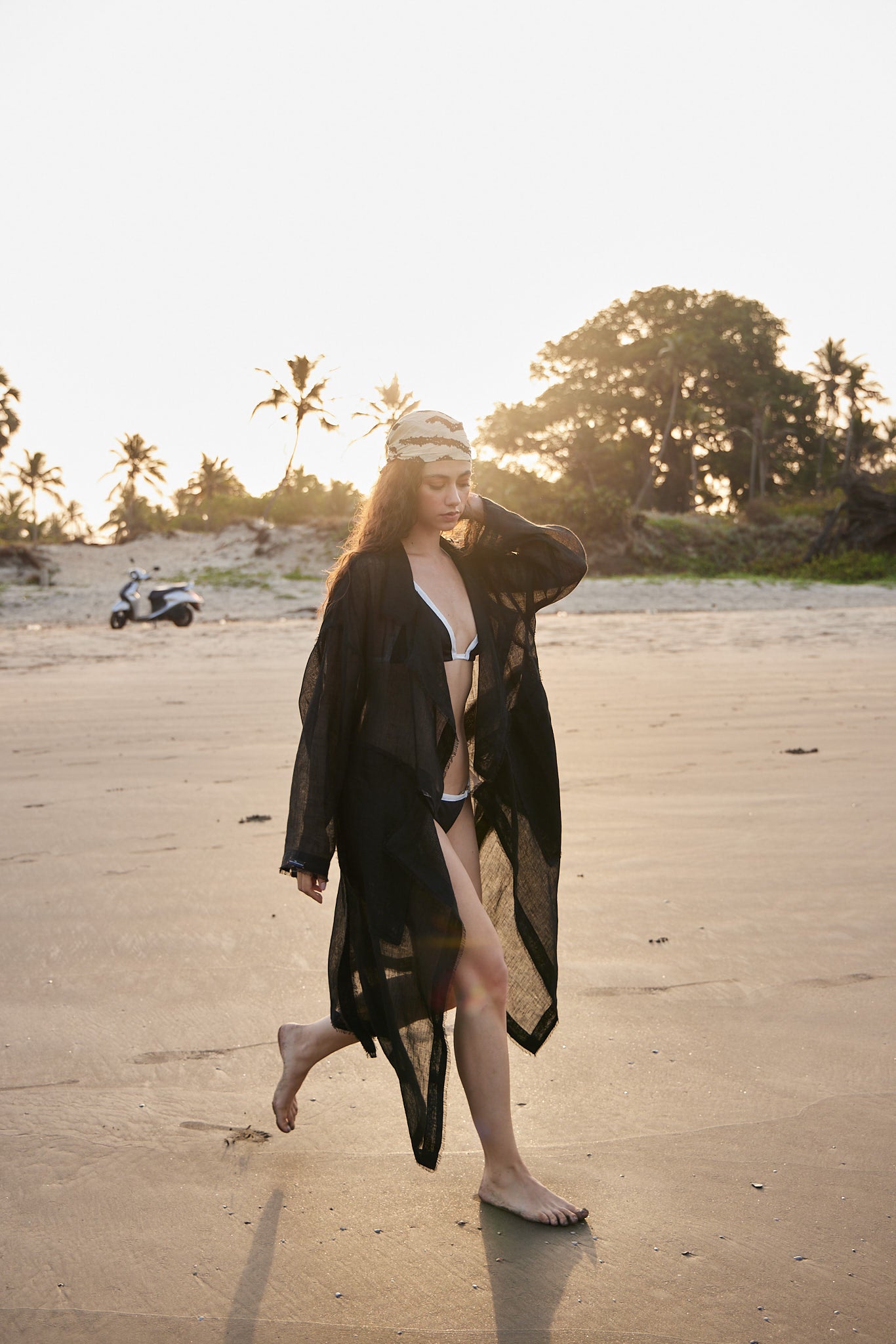 This vacation season, we aspire to see you up your style game in our Black Linen Trench Overlay. The full-sleeved add-on has a drop shoulder and loose-fit silhouette. The trench collar is what makes it truly stand out whereas the black linen waist belt makes it an eligible essential for a morning stroll on the beach, under your bikini or skimpy nightclothes.