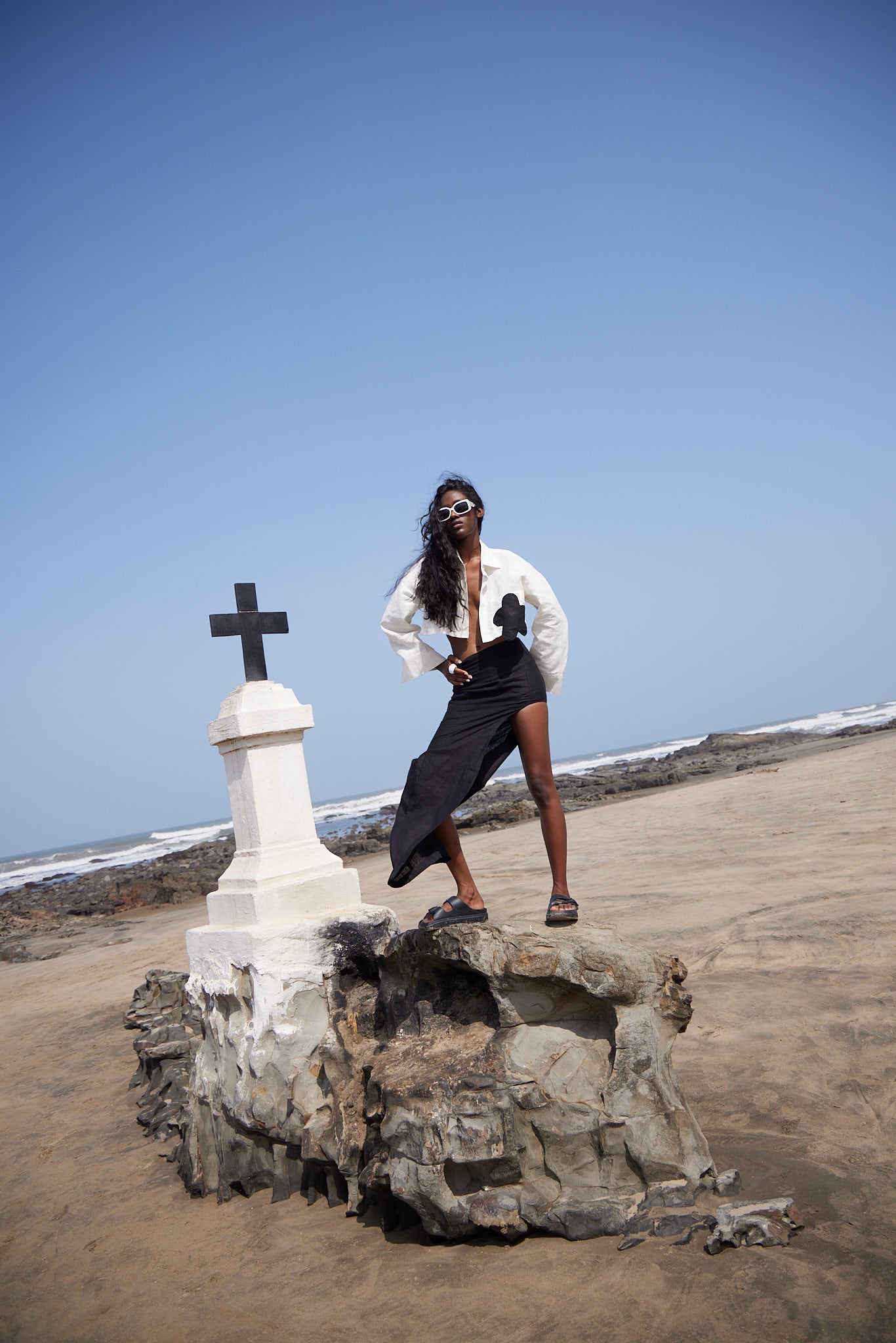 This oversized crop linen shirt doubles as a stylish jacket, perfect for a versatile wardrobe. Crafted from premium linen, it features a relaxed fit and a classic shirt collar for a sophisticated look. The full sleeves come with snap button plackets, adding a touch of detail. A standout feature is the black linen poppy flower patch on the chest, creating an asymmetric hem that sets this piece apart.