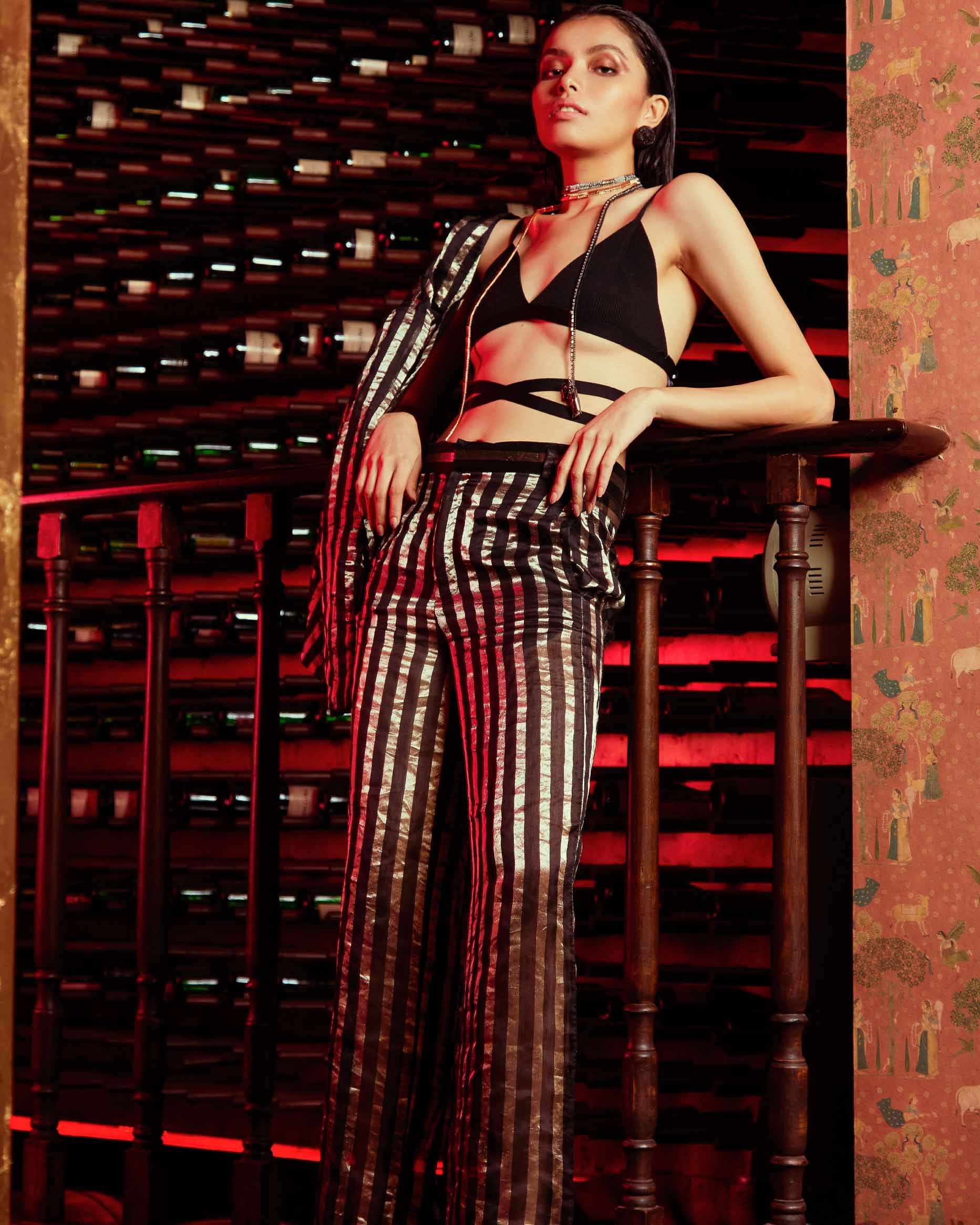 There’s nothing as powerful as donning a metallic striped pant suit and walking into a festive party. The sheer opulence and sensual undertones of the blazer and high-waisted pants are both inimitable and admirable.