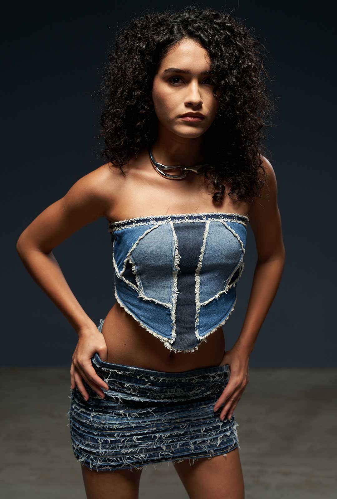 Elevate your fashion ethos with our Upcycled Denim Mini Skirt, a remarkable piece of the "Fragmented Reality" collection. This skirt embodies the spirit of sustainability and creativity, repurposing denim jeans hems into captivating stripes that adorn the entire skirt. The raw and unfinished hem edges pay homage to denim's rugged authenticity, adding a touch of character to this mini masterpiece. Secured elegantly with a metal zipper at the back, this skirt blends contemporary style with a nod to denim's timeless appeal. Whether you're pairing it with a casual tee for a day out or dressing it up with a statement blouse for a night on the town, this skirt invites you to embrace both fashion and eco-consciousness. Join us in reimagining fashion's future, one up-cycled creation at a time.