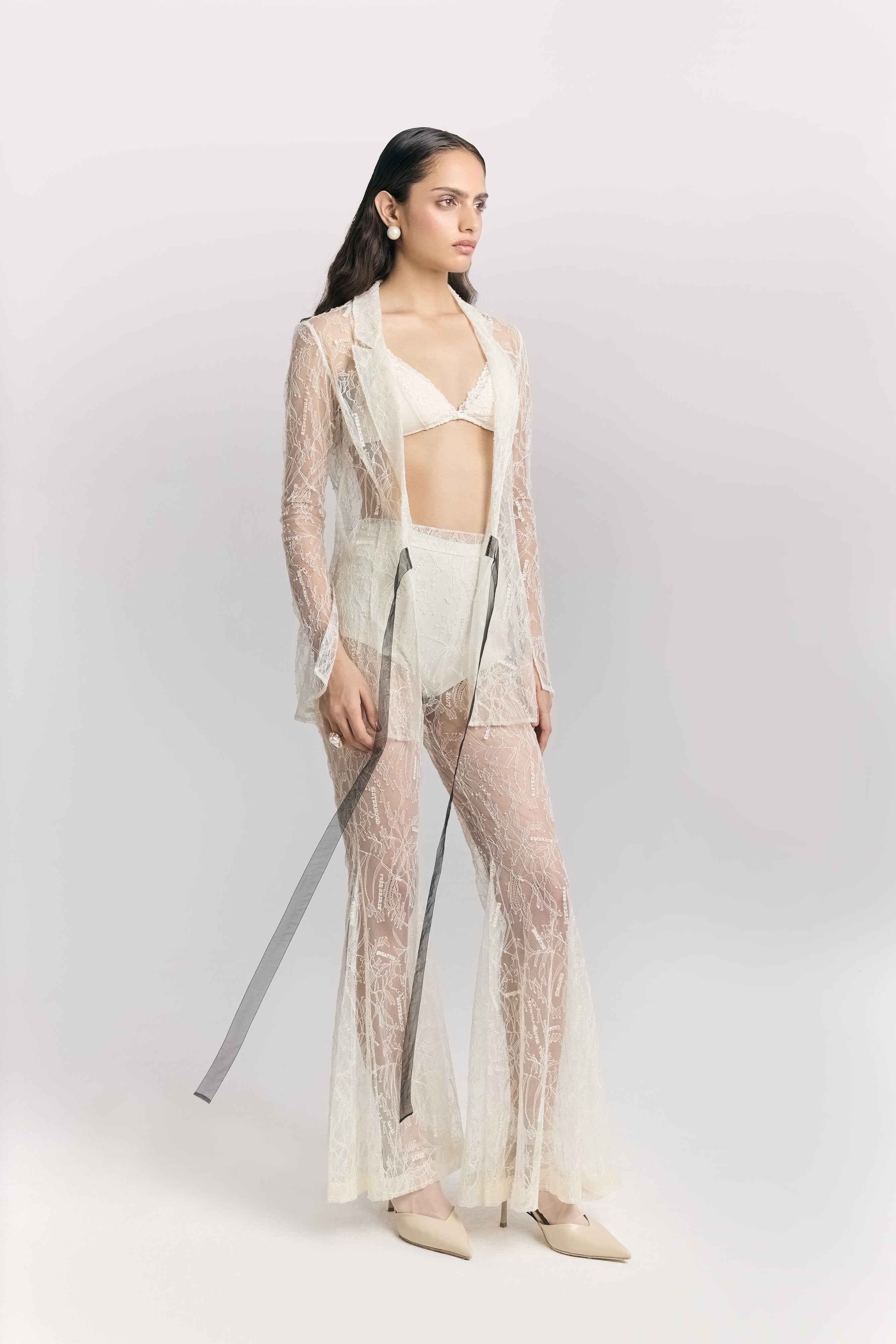 2. Chantilly Embroidered Flared Pants - Soft Wash/Dry Clean, Do Not Bleach, Low Heat Iron/Steam.