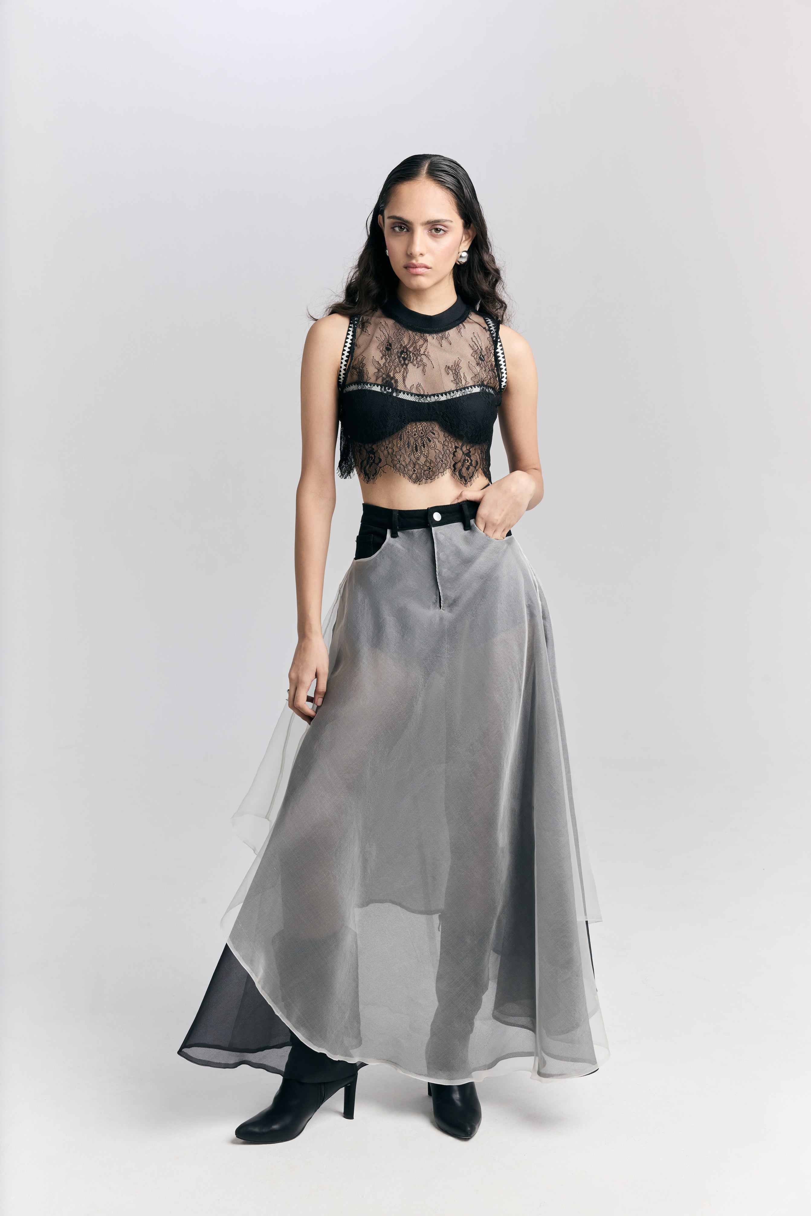 Style It - Layer over bralettes or under structured jackets. Pair with high-waisted pants, denim, satin skirts or its coordinating skirt for a statement look. Works well as a layering piece or an edgy basic.