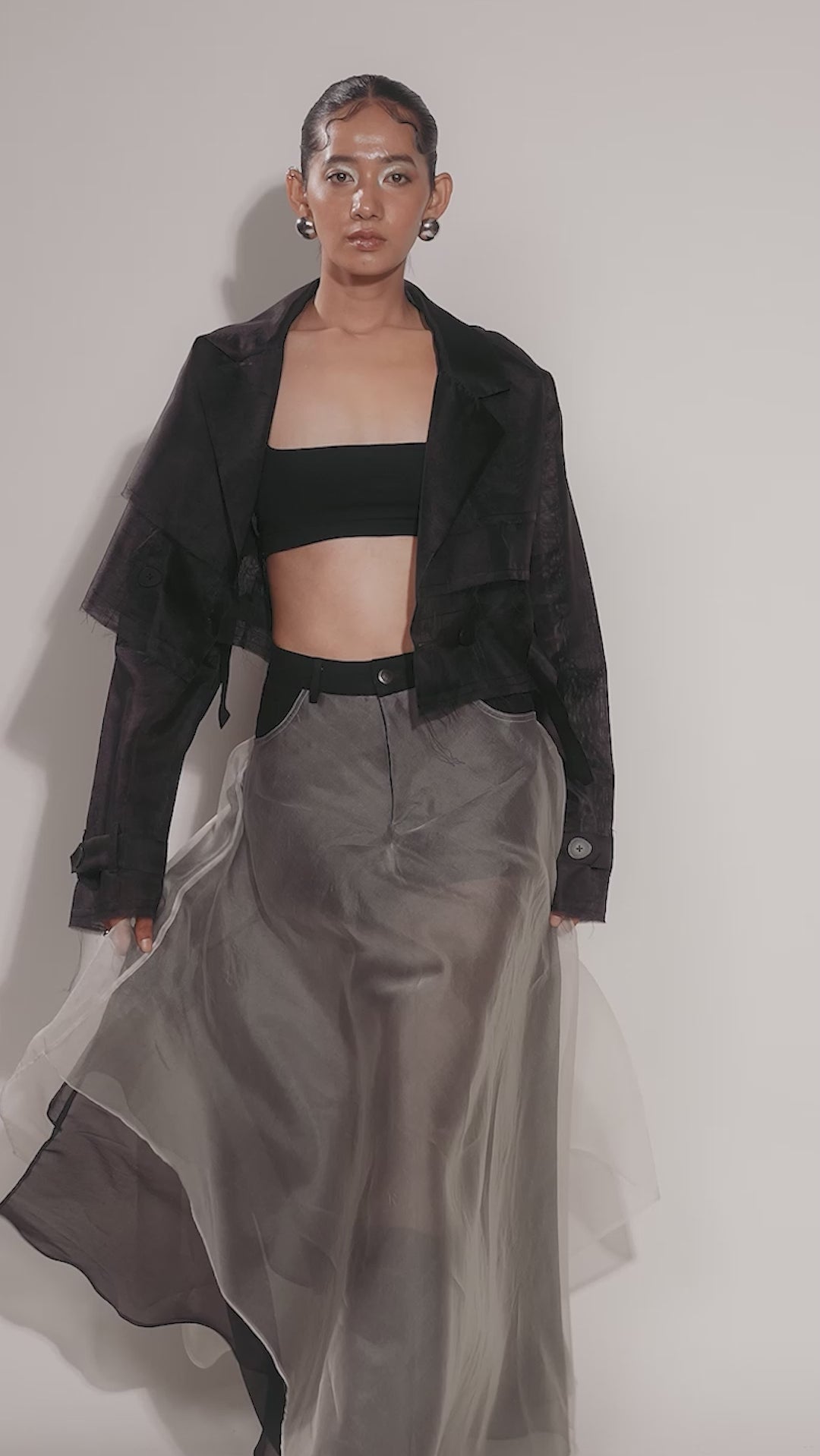 Black Organza Cropped Trench