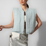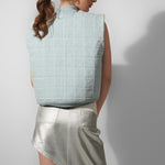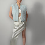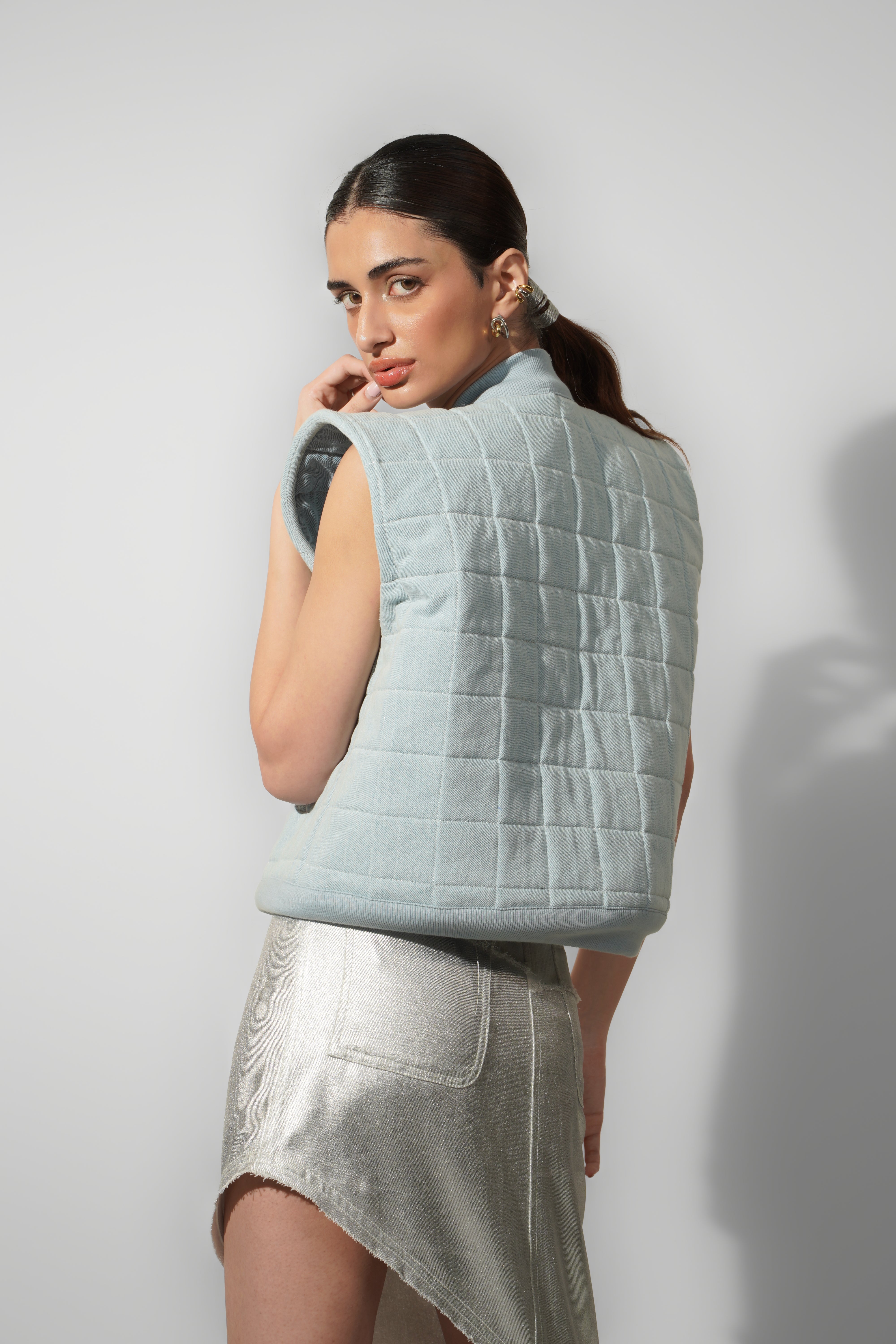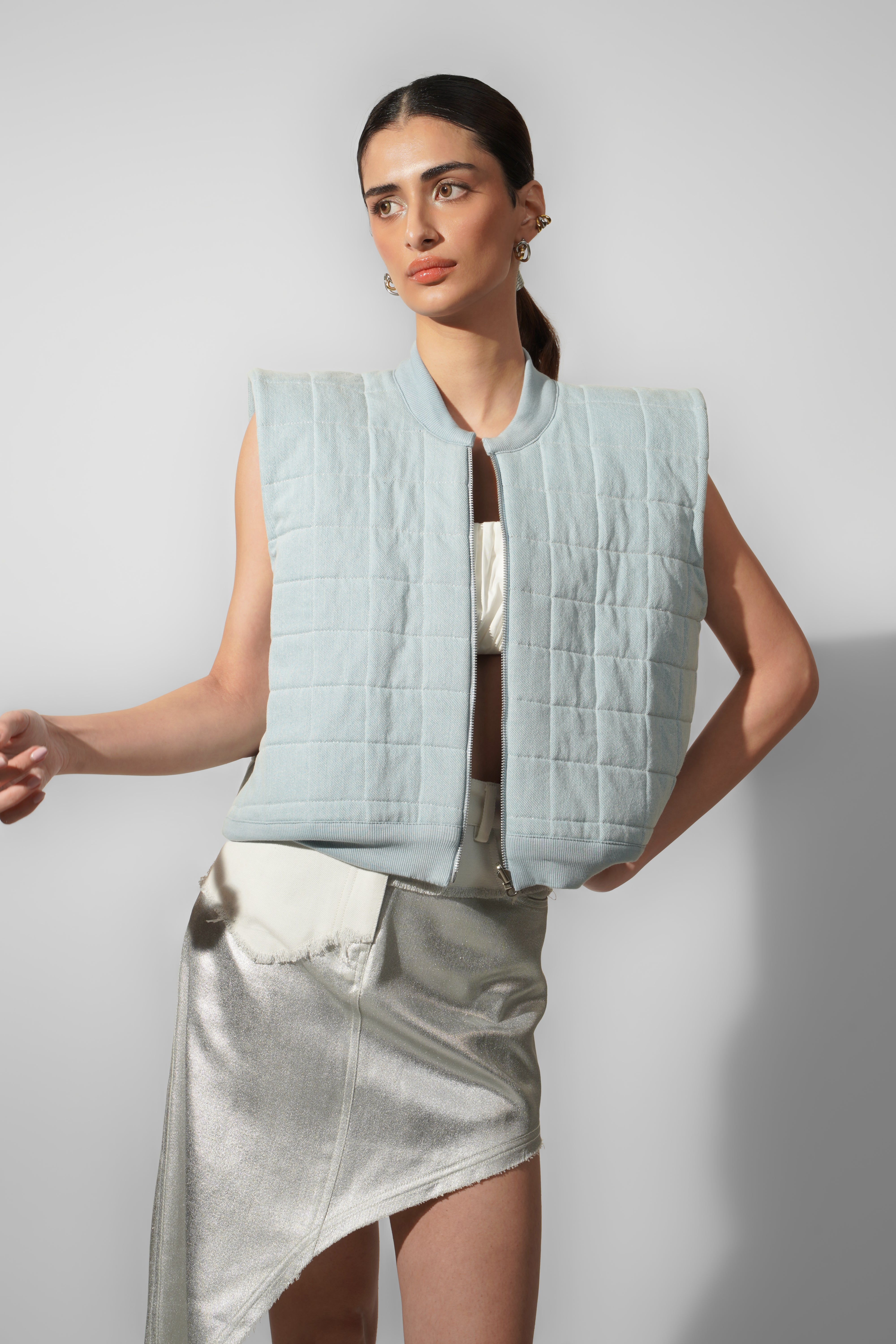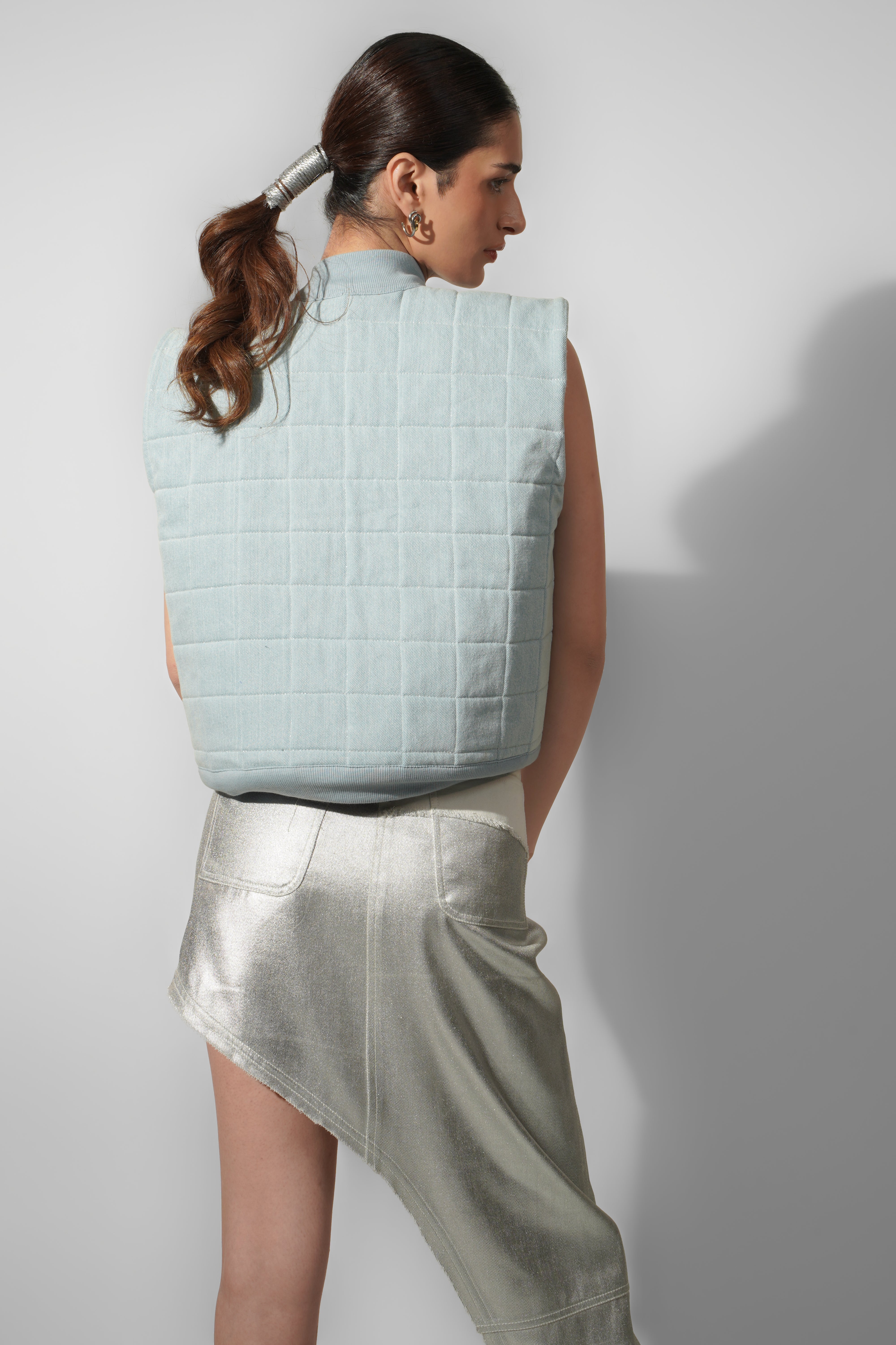 Accents – Bold shoulders and quilted technique that give structure. Embroidered with silver zari on one side and brown on the other for a versatile reversible look. Hidden side pockets for comfort.