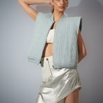 Style It – Pair it with a structured vest or minimal crop for a directional look. Style with basics for the day and match its metalics for the night.