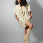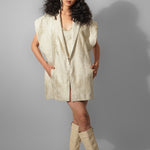 Beige Jacquard Blazer Dress And Corset